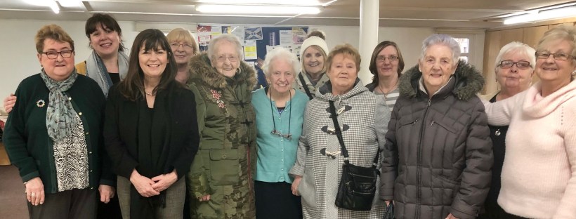Below is a photograph of Clare Haughey MSP and Cllr Janine Calikes with Maureen Clark and Busy Bees service users – taken 25th January 2019.